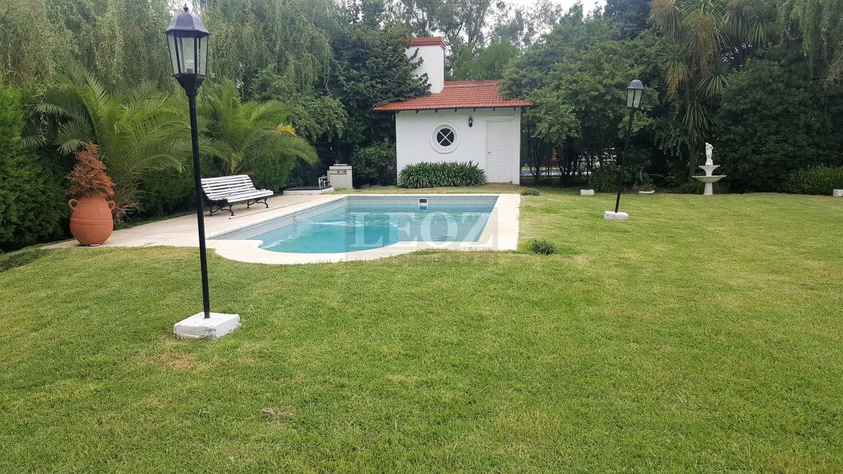 Excelente propiedad estilo campo con 4 ambientes amplios; 3 habitaciones, dos con baño en suite, vestidor en paso, baño completo de recepción, sala de estar con amplio hall de entrada, cocina con parrilla integrada, bar, gran comedor diario, living y cochera.