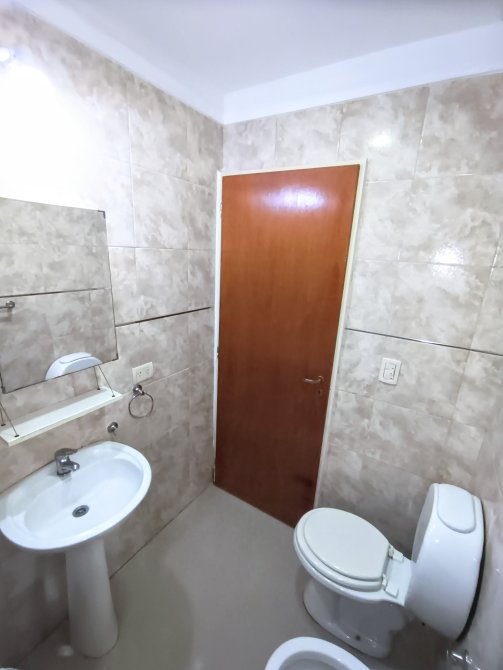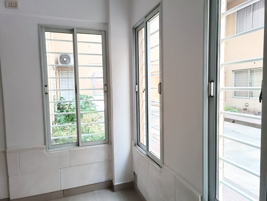 - 1 dormitorio luminoso con pisos de porcelatato, placar empotrado con su interior, ventanas de aluminio con protección de rejas en el exterior.