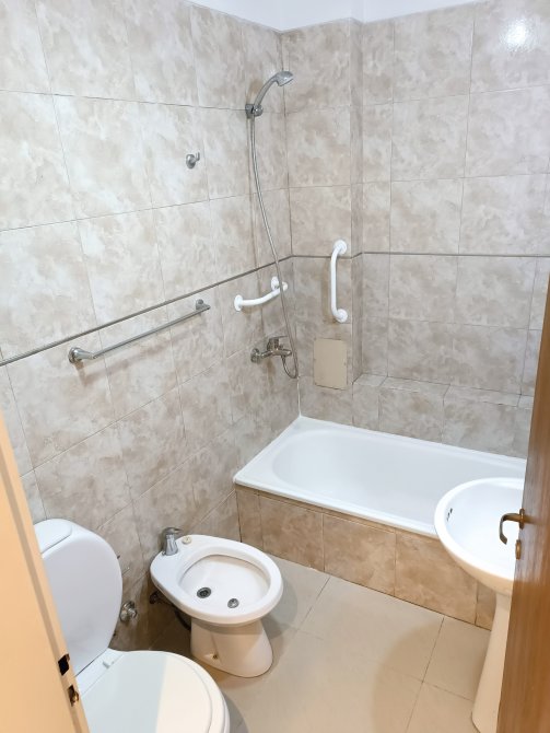 - 1 baño grande completo con bañera y con cerámicas en paredes con pisos de porcelanato, carpintería de aluminio con griferías marca Ferrum.