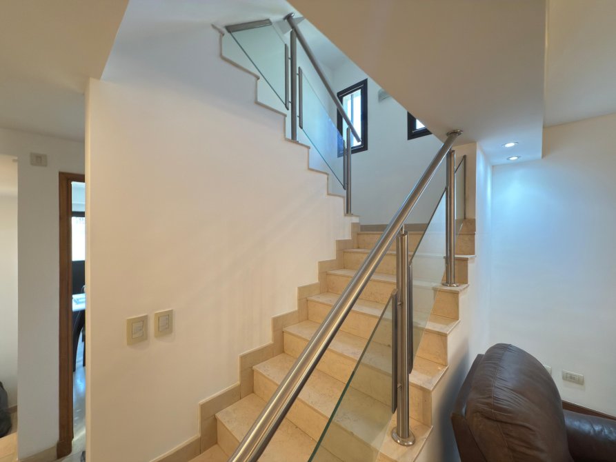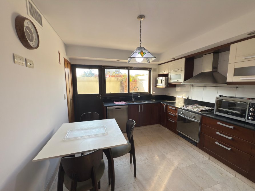 PLANTA BAJA: ingreso por un pequeño recibidor con escaleras que nos conducen directamente al living comedor con ventanales y vista a la calle Rotta, cuenta con un toilette con ante baño, la cocina en la misma planta con mesada de granito, muebles bajo y sobre mesada, vista al patio y puerta para tener acceso a este, parrilla tipo horno de ladrillos, mesada de granito con bacha de acero inoxidable, espacio ideal para el secado de la ropa.
