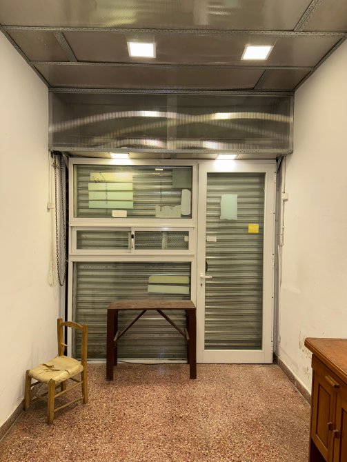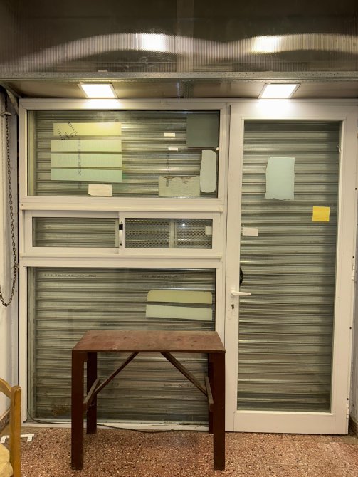 perciana de metel ciega al frente con vidriera y puerta de vidrio.