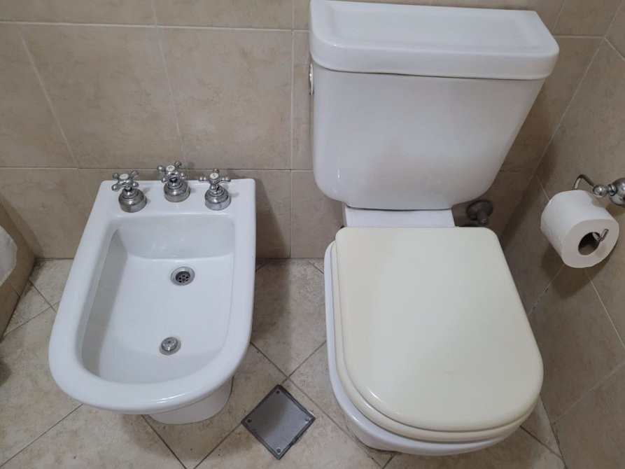 Baño completo, con griferias, sanitarios y ducha.